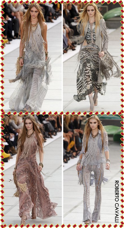 Nessa coleção, Cavalli usou as franjas em tudo. Tenho uma forte atração por coisas que fogem do tradicional. Adoro peças com um toque diferente.
