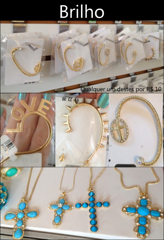 Adorei o stand da Brilho. Lá o preço máximo é de R$ 25,00. Tem muita corrente de cruz, brincos, colares, anéis… Muitas tendências com um precinho imbatível.
