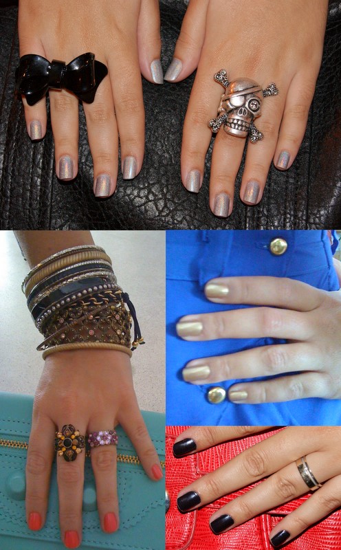 Oh tantos detalhes lindo. Amei o esmalte dourado da menina com a blusa azul e o anel de caveira na primeira foto.