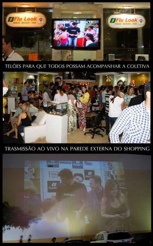 Toda a estrutura foi pensada para que todos pudessem ver e participar dessa coletiva com Luciano Szafir. Do lado de fora do shopping o evento era transmitido ao vivo para que todos pudessem ver. Até mesmo dentro da loja havia telão para que não perdêssemos nenhum click do ator.