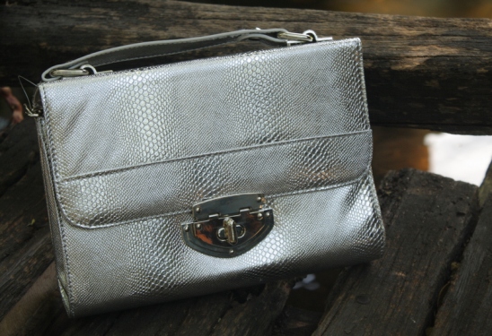 Outro modelinho versátil é essa bolsa prateada que pode ser usada com a alça curtinha ou com a comprida. Também tem na cor preta.