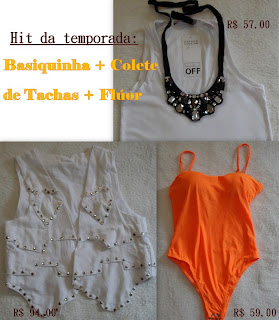 Dentre outras compras, na Planet Girls, comprei um colete branco com tachas. Lindooo! Bem usável! E em promoção! Gostei tanto que usei lá mesmo, junto com o body laranja no Festival de Verão, hehe!