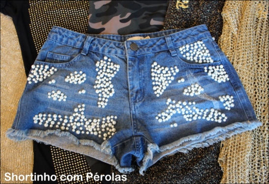 A minha primeira compra e um super achado, foi o short de pérolas. Já tinha visto alguns modelos na net e estava doidinha por um.