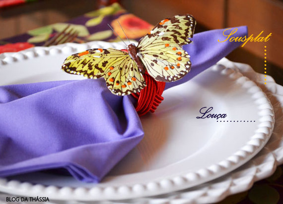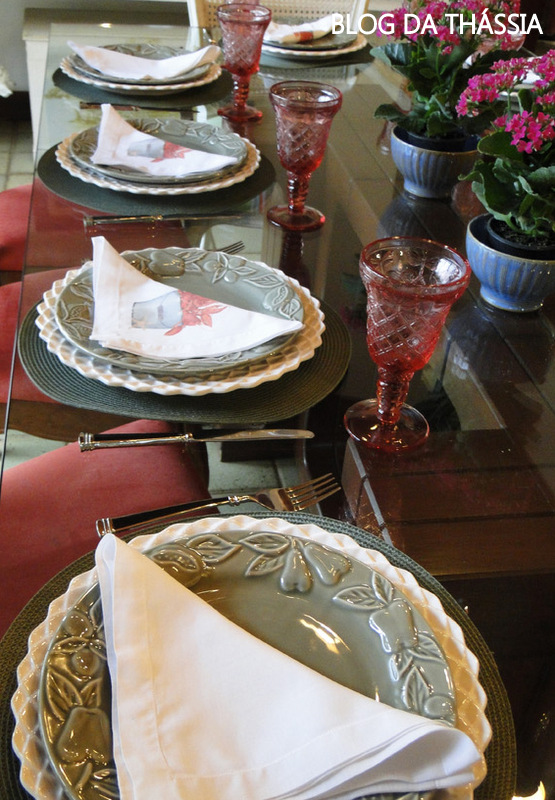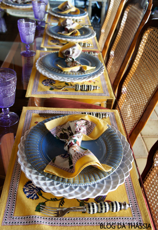 Na verdade, eu queria algo mais clean para que desse para mudar apenas com pequenos detalhes. Como sempre gostei do estilo provençal, procurei algo que remetesse a esse estilo. As inspirações de louça de jantar mais bonitas e fáceis de copiar, encontrei no Blog da Thássia. A louça é quase sempre a mesma, mas a cada evento a decoração se transforma por causa dos detalhes.