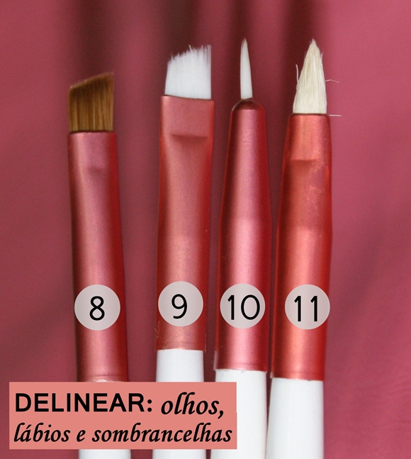 Como tenho um problema enorme de duração de batons nos lábios, todas as vezes que quero fazer aquela make perfeita, uso o Pincel de Batom (11) para arrematar a make. Ele define melhor o contorno dos lábios e ajuda na fixação da cor do batom. O bom é que limita a quantidade de batom nos lábios, evitando aquelas papinhas de excesso.