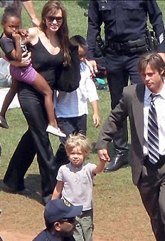 Levando os pequenos para visitarem o pai no set de filmagem. Também de preto!