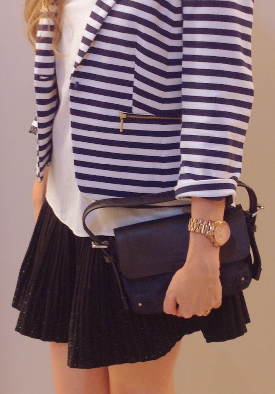 Hoje tive um chá de bebê de uma amiga que está morando fora. Aproveitei que a ocasião era num bairro que faz um friozinho a noite para poder colocar o meu amado blazer de listras.