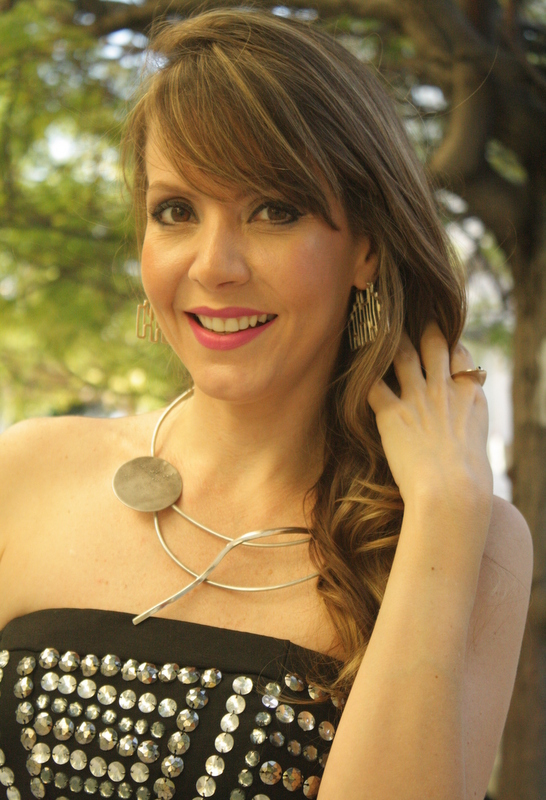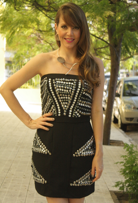 Por fim, um vestido preto mais soltinho com detalhes de paetês. Combinei com acessórios leves que compõem, mas não pesam e nem interferem no resultado.
