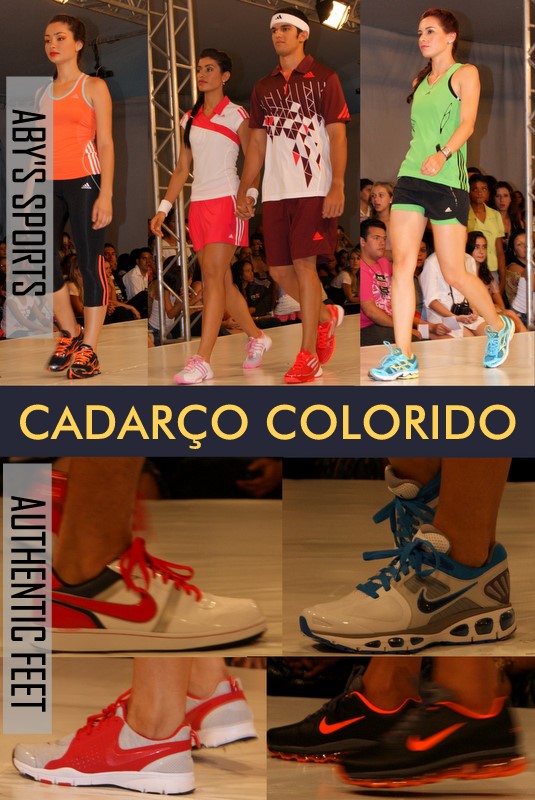 Várias marcas apresentaram seus modelos fitness e o que me chamou a atenção foram os cadarços coloridos. Os cadarços combinando com o tênis e com a malha. Nem preciso dizer que amei, haha. Bem o meu estilo. Uma opção barata de entrar nesse estilo é comprar vários cadarços colorido e sair trocando conforme a roupa. Dá trabalho, mas economiza um bom dinheiro.