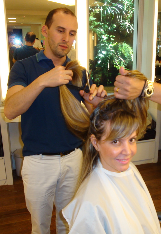 Depois das apresentações eu disse que não queria o cabelo curtinho e deixei o resto em suas mãos. Uiiii!