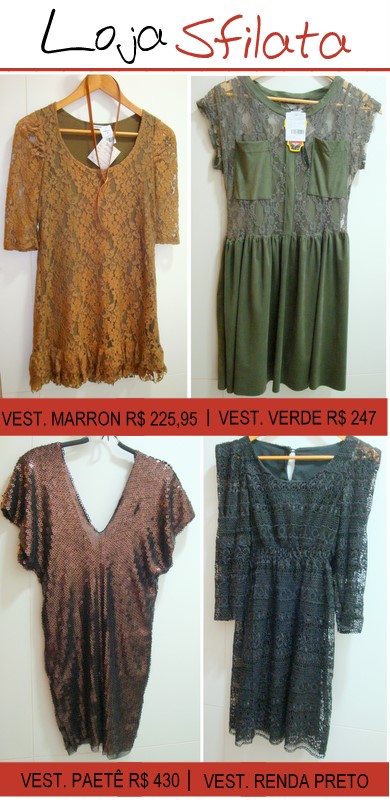 Além das peças garimpadas a loja vende várias marcas nacionais. Adorei esses modelinhos de renda (foto acima) e este vestido marron de paetê. Todos esses modelos da Sfilata têm ainda 30% de desconto sobre o valor colocado nas fotos.