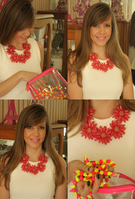 Fiquei doida pela bolsa neon amarela e pelas pulseiras de spikes!! Lindas!