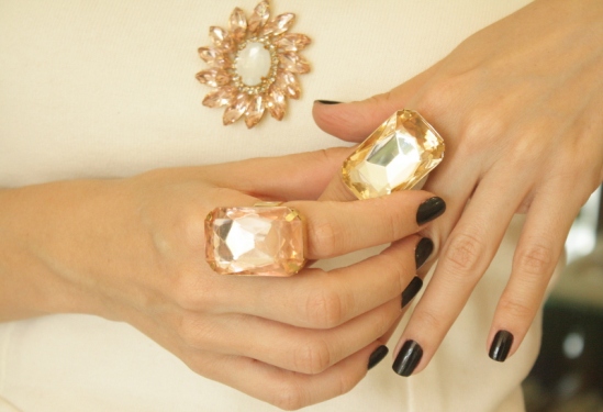 Para quem gosta dos tons mais clássicos, o preto desta temporada é menos sério, numa versão mais light. Fica ótimo com o anel vazado animal print. Também adorei o anelzinho preto de spike. Muito fofo!