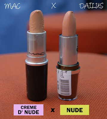 Para isso comparei 3 cores da Dailus com os da Mac que tenho em casa. Os batons da Dailus são: Nude, Up Kisses e Elitric.