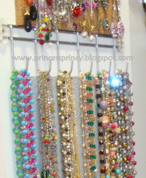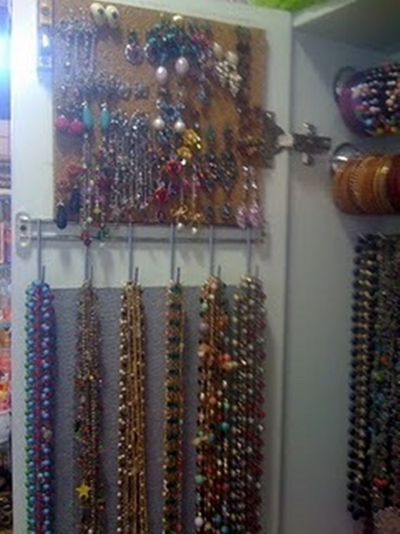 Ganchos de pendurar roupas que foi adaptado na porta do armário para pendurar os colares!