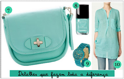 Ultimamente tenho observado bastante essa cor, acqua ou turquesa, ela ainda está vindo com cautela, mas aposto todas minhas fichas que ela vai bombar no verão de 2012.