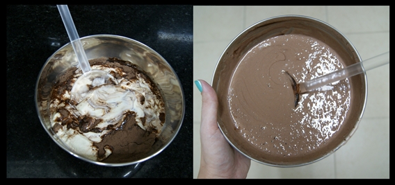 3. Mexa até ficar uniforme o achocolatado com o creme de leite;