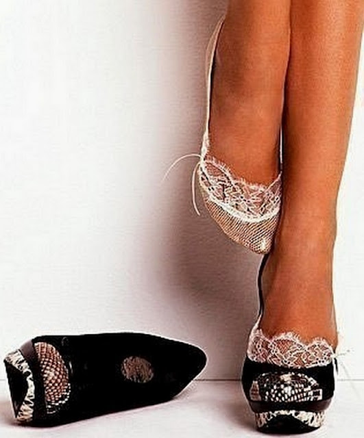 Há um ano atrás, postei (veja aqui) a foto abaixo de uma meia de renda que eu tinha visto na net e me apaixonado. Achei um super charme, mas não sabia aonde encontrar.