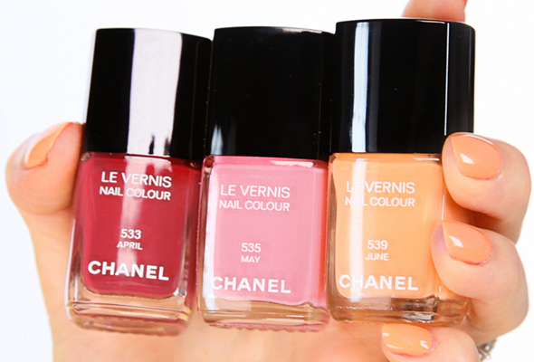 Final do ano passado a Chanel fez suas apostas para a coleção de primavera da marca. Os esmaltes são nominados como April, May e June.