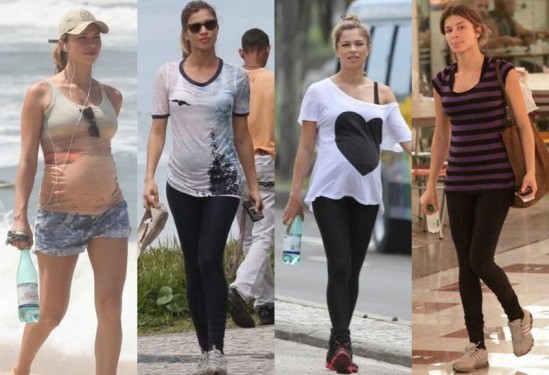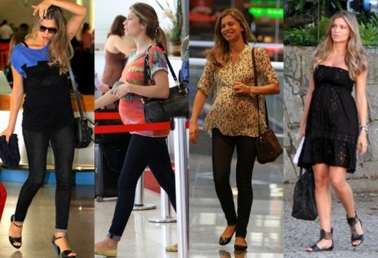 Gisele Bundchen praticamente não engordou na sua gravidez. Só faz uma barriguinha. As pernas continuam magrinhas. Acho que deve ter sido bem mais fácil ser uma grávida assim. A modelo usou bastante legging + blusa justa + casaco. Combinação perfeita.