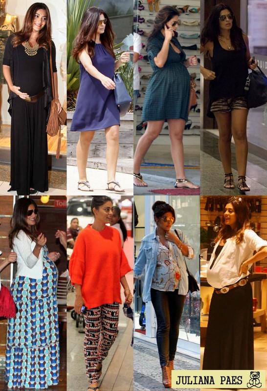 Sinceramente achei super difícil achar looks legais quando estava grávida. Sei da dificuldade que muitas têm para achar modelos legais e confortáveis. Então, resolvi pesquisar o que as famosas estão usando para inspirá-las nesse momento especial.