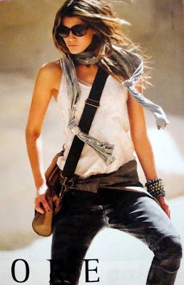 Adorei esse look acima, nao me recordo qual é a marca. Mas deu para eu me encorajar a fazer super produção para o dia a dia. Geralmente faço o estilo menos. Mas olha que legal: Boyfriend + blusão estampado + colete com franjas + cinto + pulseira. Linda!