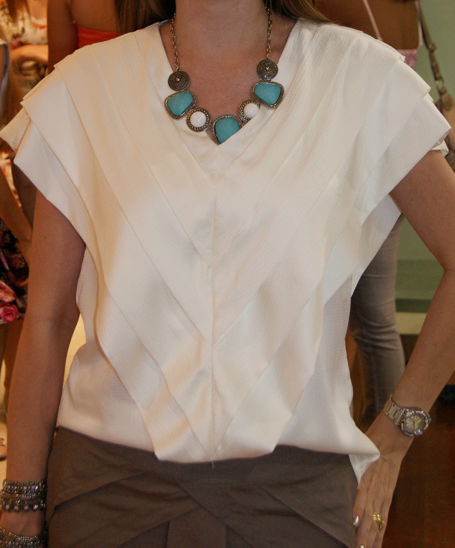 Como o encontro foi a tarde, apostei num look mais leve. Para dar uma corzinha ao look, coloquei acessórios turquesa.