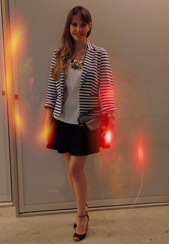 Hoje tive um chá de bebê de uma amiga que está morando fora. Aproveitei que a ocasião era num bairro que faz um friozinho a noite para poder colocar o meu amado blazer de listras.