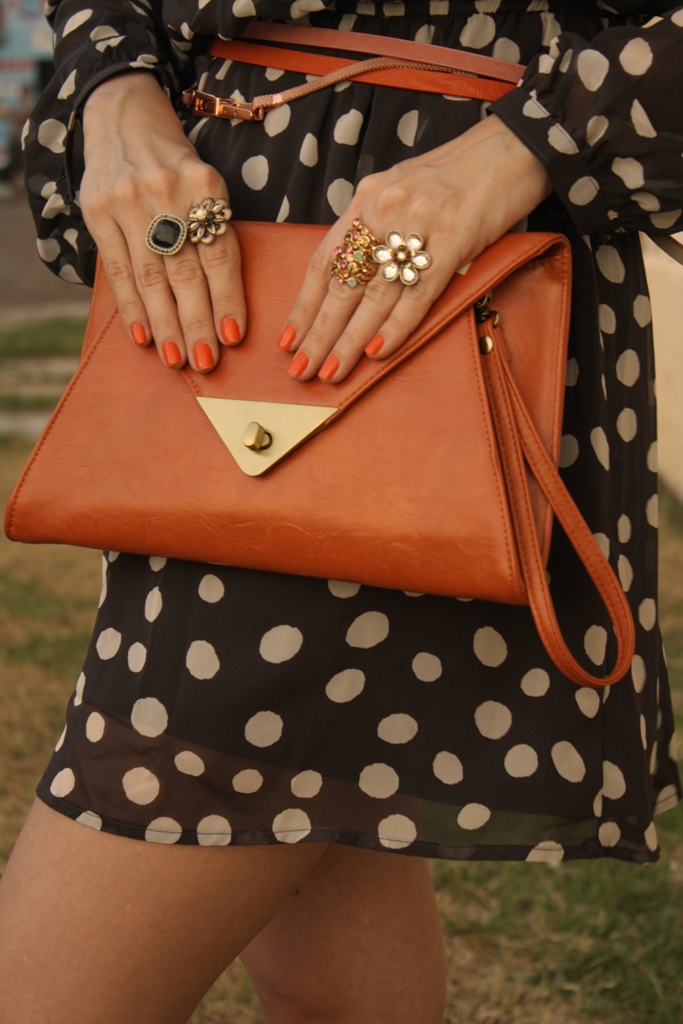 Vestido Forever 21 (Dona Tetê); Cintos Dona Tetê; Clutch Empório Bijux; Anéis L’éclat; Colar Forever 21; Sapatos Santa Lolla.