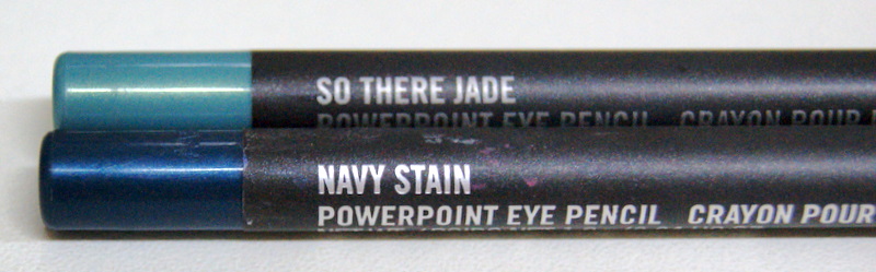 Começei usando o Navy Stain (azul) para delinear os olhos. Coloquei como se estivesse usando o lápis preto. Depois que coloquei em cima e abaixo dos olhos, peguei o Jade (verde) e fui pintando a pálpebra. Não pintei até a curvatura da pálpebra para não ficar demais. Eu queria apenas um efeito esverdeado. Passei o lápis algumas vezes até ficar na tonalidade mais pigmentada. No final passei um pouco mais do Navy Stain para marcar bem o contorno dos olhos.