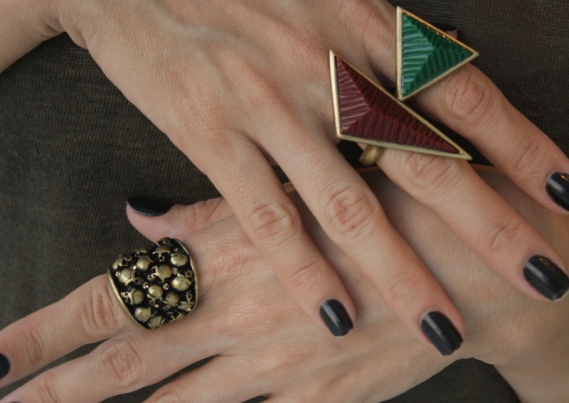Outro modelo de maxi brinco que adorei, foi esse com roxo. Ele é muito levinho (e com preço muuuito bom)! Perfeito para minha orelha “preguiçosa”. Reparem no novo modelo de anel que acabou de chegar, que fica entre a dobra central do dedo. Adorei!!!