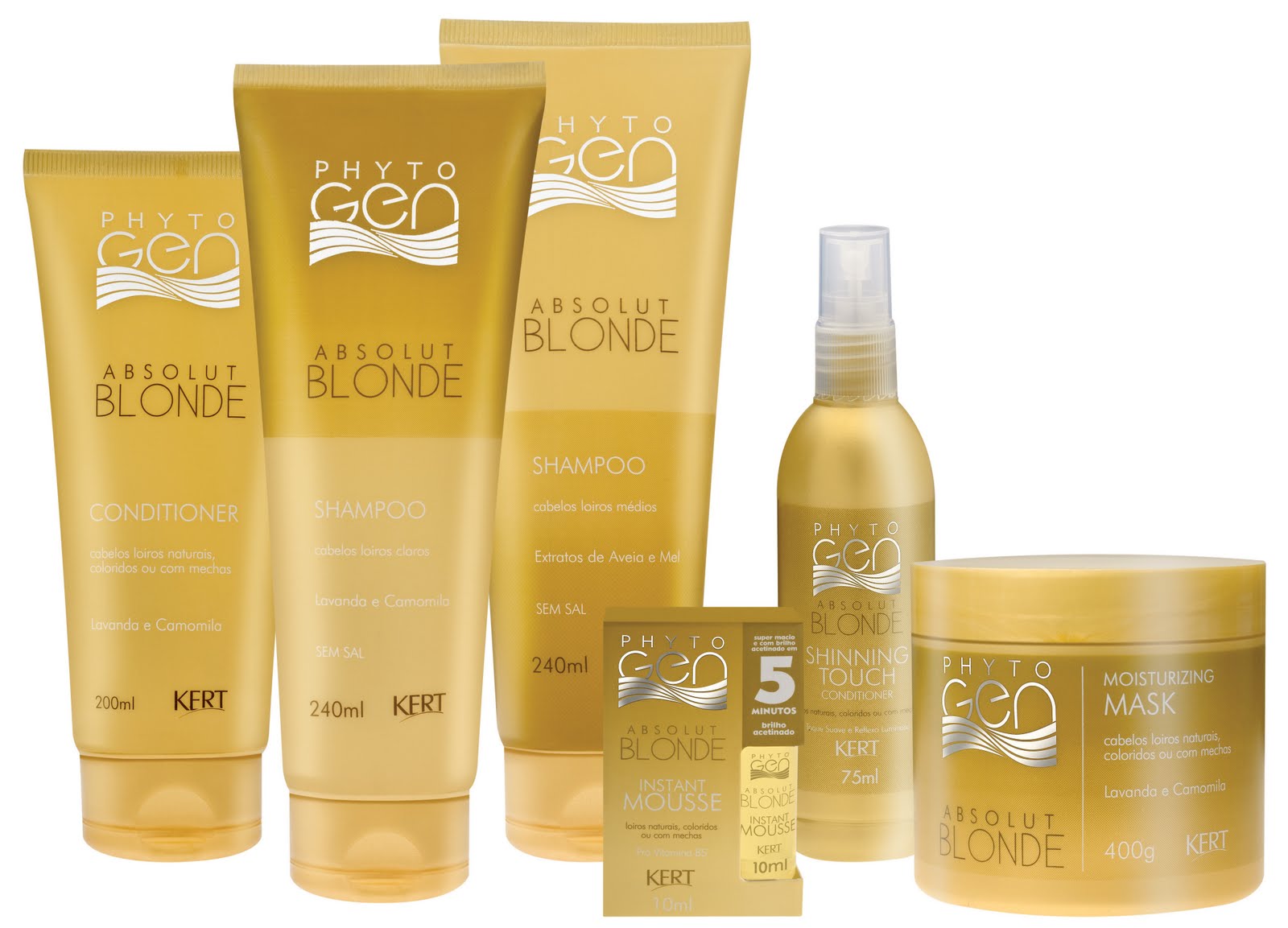 Primeiro foi a linha Absolute Blonde da Phytogen (Kert). Como sou loira e sempre uso shampoo para cabelo branco e grisalho para tirar aquele amarelão que o cabelo fica depois de um tempo de descolorido. Clique para ver post sobre o shampoo para cabelo loiro. O shampoo que tenho só deve ser usado 1 vez na semana, já o da Absolute Blond é para uso diário.