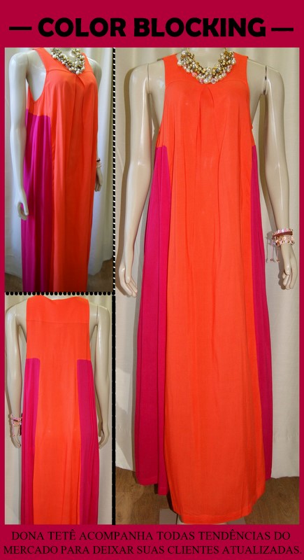 Não podia faltar o longo Color Blocking. Gamei nesse modelo laranja com rosa! Bem verão!