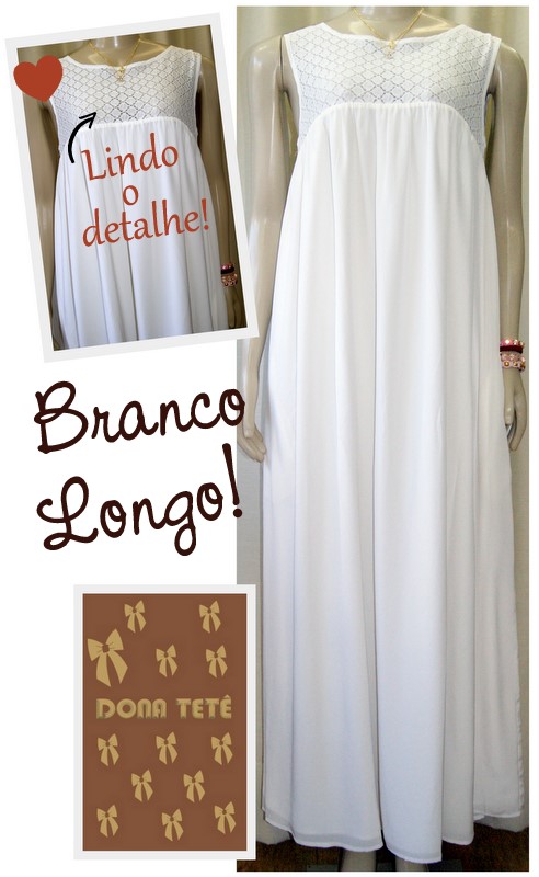 Esse vestido branco é simplesmente maravilhoso! O modelo é bem clássico, apenas com um detalhe no busto. O tecido do vestido tem um peso incrível que valoriza o corpo. Eu provei e ficou lindo! Ameeei!