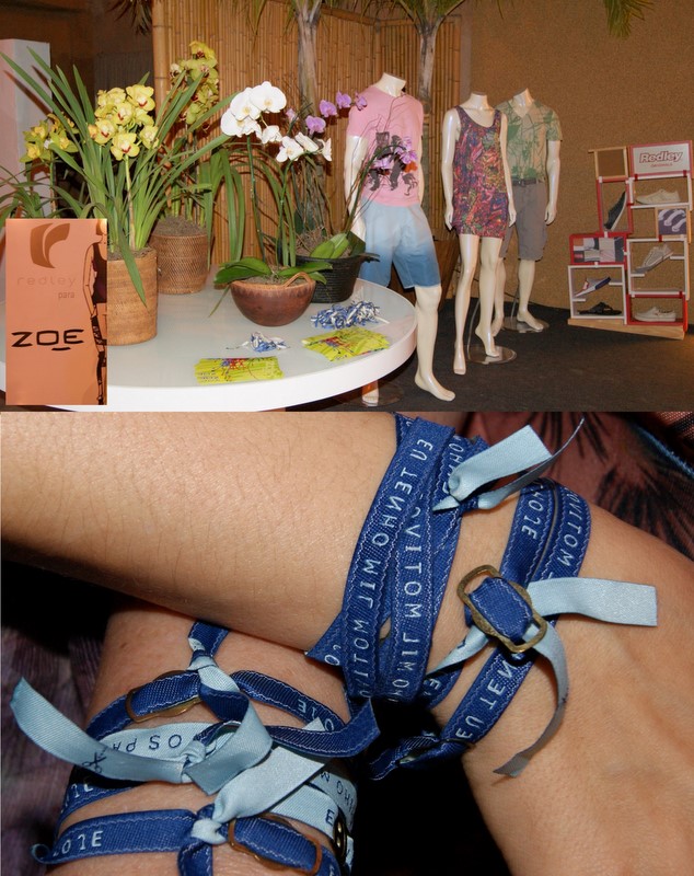 Farm e Redley são marcas vendidas pela Zoe. Lindas pulseirinhas da Farm eram mimos para os visitantes.