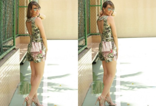 Esse macaquinho é a típica peça que amo ter no armário. Super prático, arrumadinho e com tons lindos. O decote das costas é um charme!