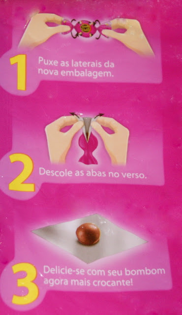 Agora a embalagem do bombom vem toda colada e para abrir tem que descolar o papel.