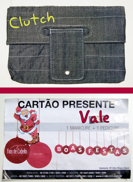 O kit é composto de uma clutch jeans (linda)+ leave in Kérastase+ vale manicure-pedicure no Fios de Cabelo!