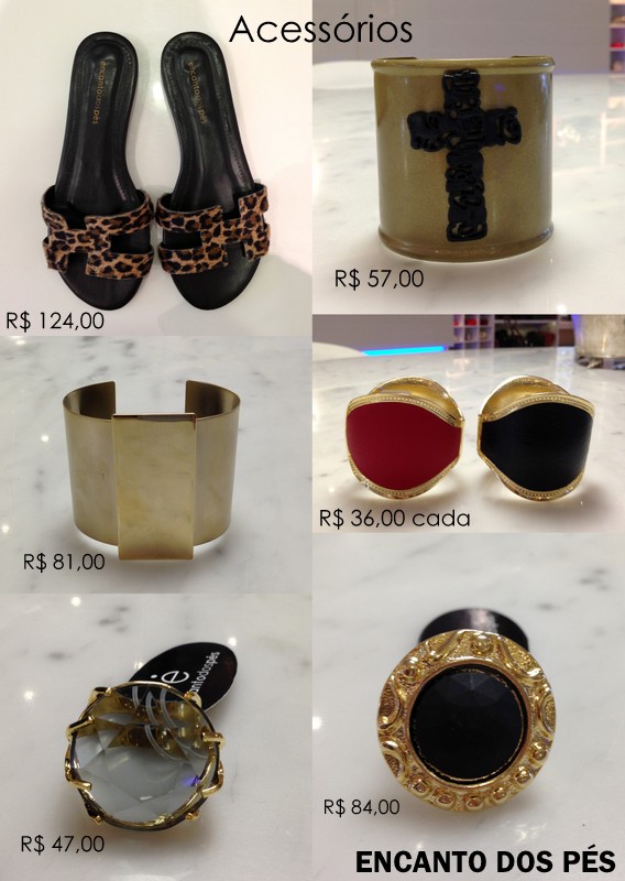Na Encanto dos Pés você poderá encontrar uma variedade enorme de opções de presentes, como anéis grandes, sandália Hermè inspired, braceletes, bolsas…