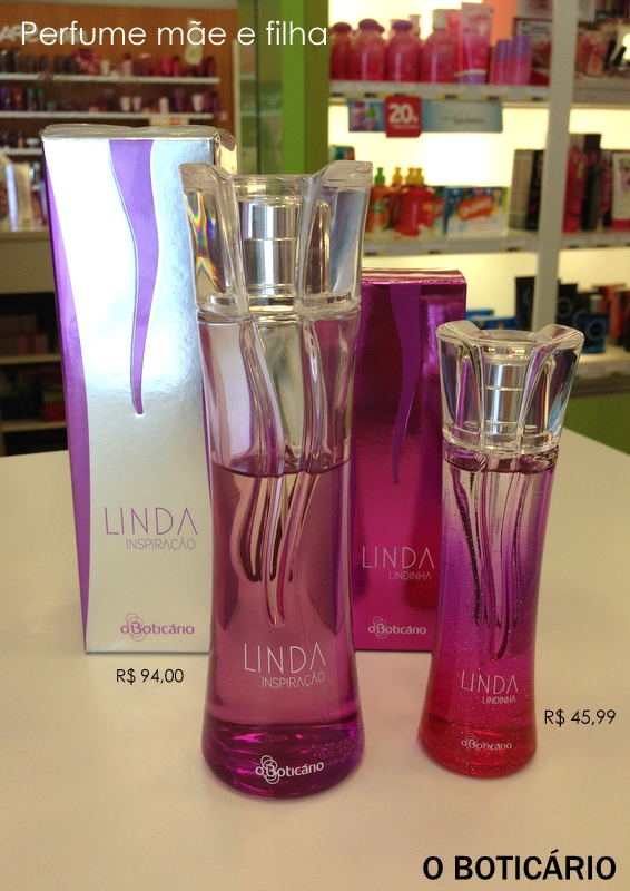 Um lançamento do O Boticário para o dia das mães é o perfume Linda Inspiração (para a mãe) e o Linda Lindinha (para as filhas). A mesma fragrância na versão adulto e criança.