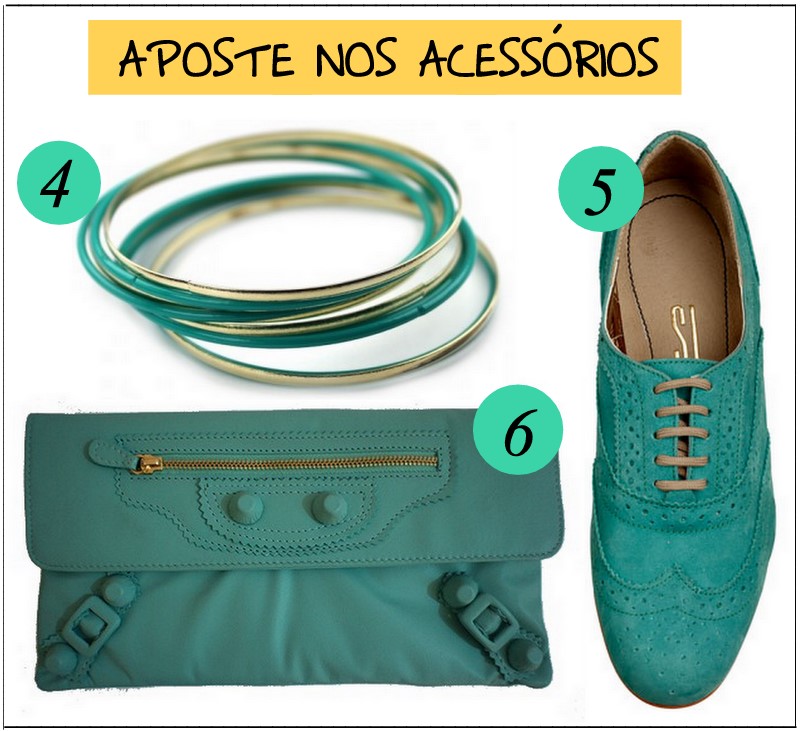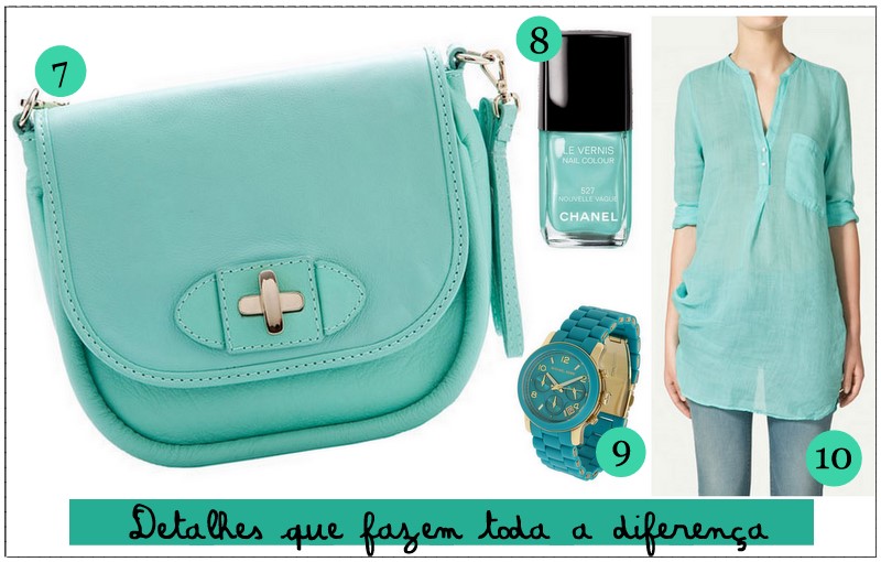 Sei que é difícil sair num look todo acqua, que até pode gerar uma insegurança, então vale a pena investir em pequenas peças e deixar o look bem atual e valorizado.