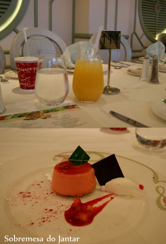 Cada cabine tem seu horário de jantar previamente designado. São dois turnos (17h45 e 20h15m). Ainda bem que ficamos no segunto turno.