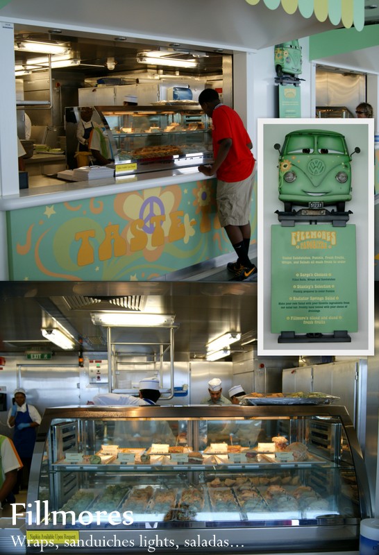 Além dos restaurantes do navio, há também umas lanchonetes no Convés 11. Só soube delas no segundo dia (fui descobrindo o navio aos poucos). Adorei essas lanchonetes, pois tinham de tudo (frituras, sanduiches, saladas, pizza, frutas…). Gostei mais dessas comidinhas!
