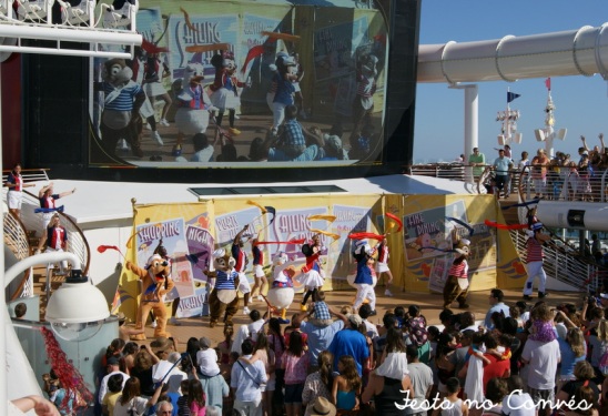 Em uma das noites, teve uma festa no Convés 11 (céu aberto), o tema era Piratas do Caribe. Adultos e crianças vão a caráter para essa festa. Todo mundo entra no clima. A maioria das pessoas já leva fantasia de casa. Mas, para que ninguém fique de fora do clima, todos os hóspedes ganham bandanas para que se caracterizem.