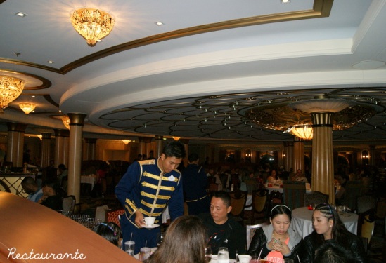 Cada cabine tem seu horário de jantar previamente designado. São dois turnos (17h45 e 20h15m). Ainda bem que ficamos no segunto turno.