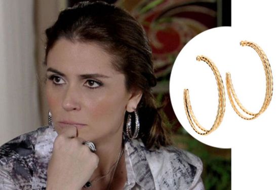 Alguns brincos da Helô são Rommanel como esse acima em formato de gota vazada (R$ 199,00) e essa argola dupla trabalhada da foto abaixo (R$ 229,00).